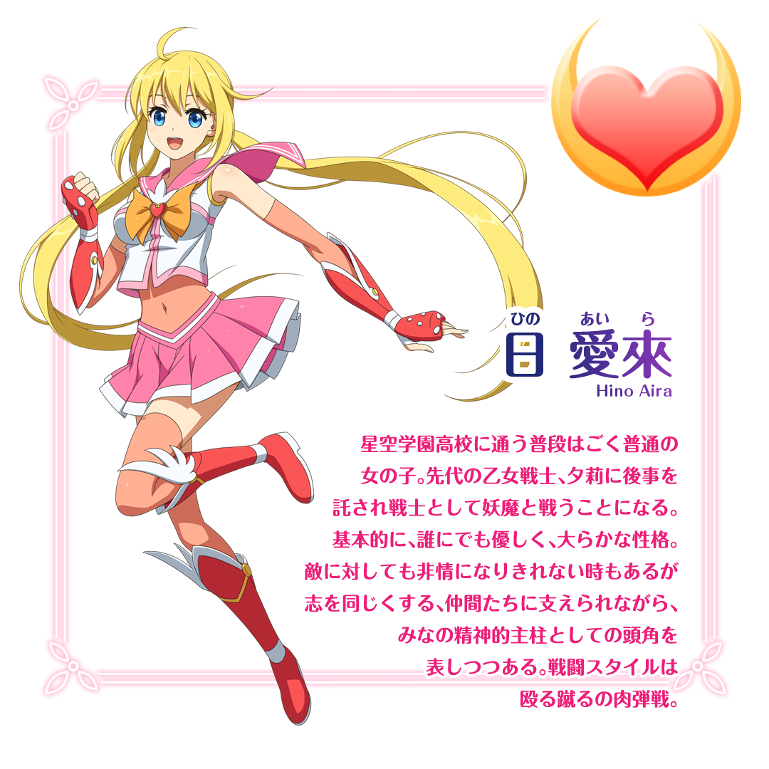 星空学園高校に通う普段はごく普通の女の子。 先代の乙女戦士、夕莉に後事を託され戦士として妖魔と戦うことになる。 基本的に、誰にでも優しく、大らかな性格。 敵に対しても非情になりきれない時もあるが、志を同じくする仲間たちに支えられながら、みなの精神的主柱としての頭角を表しつつある。 戦闘スタイルは殴る蹴るの肉弾戦。